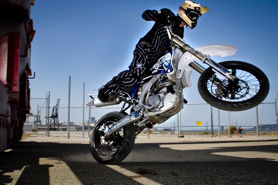 Recently I moved my entire shop, and residence to relocate back to the San Francisco Bay area with one goal in mind, violate San Francisco!!! I grew up here, but moved to Grover Beach to get my manufacturing engineering degree at Cal Poly San Luis. I ended up getting stuck there for 10 years! Not a bad place to get stuck, but daydreaming about San Francisco on the dirt bike consumed my thoughts. it was a 4 hour drive and with my crazy schedule, didn’t happen very often. Now, I am all up in it, crazy spots to hit everywhere, shooting videos and photo shoots all the time, and love it!!! One of my long time friends hooked me up with a San Francisco photographer Christophe Tomatis, http://tomatisphoto.com/, and the results have been mind blowing! Christophe is down for the cause, gettin dirty on the ground, hittin the illegal spots, hangin out of cars, getting sniper shots from the bushes with the telephoto lenses and coming up with creative lighting, angles, and ideas that have brought my dreams, to reality! I have so many awsome photos now that it is difficult for me to process. This recent shoot was on a bike I just completed after a few months of developement.